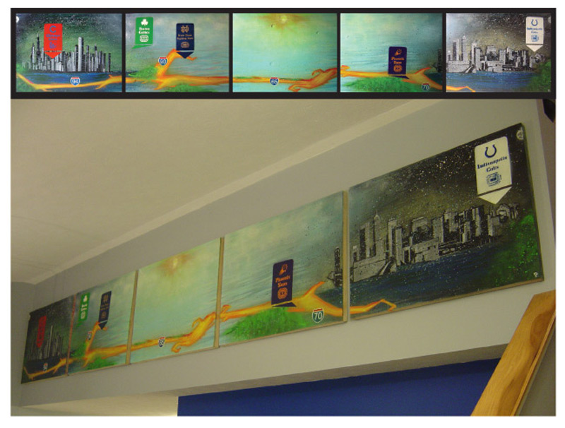 65 - Spray Paint and Stencil on Wood Panel 20' x 3'