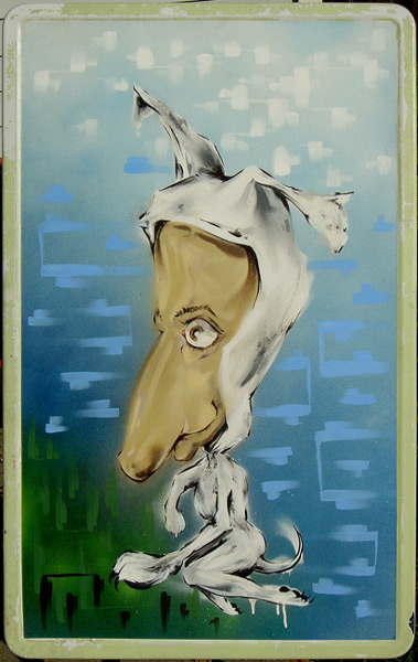 Spray Paint and Acrylic on my Parent's Old Metal Table Top