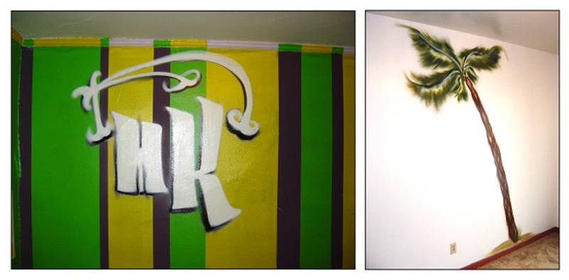 MK and Palm Tree - House Paint and Spray Paint on Indoor Wall