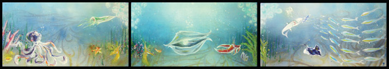 J. Alligator and Angel Fish - Spray Paint and Acrylic on Wood Panel