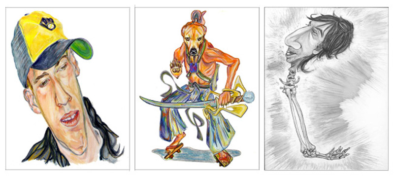 Lil' Joe, Samurai Milton, and Deadarm George - Guache, Watercolors, and Colored Pencil