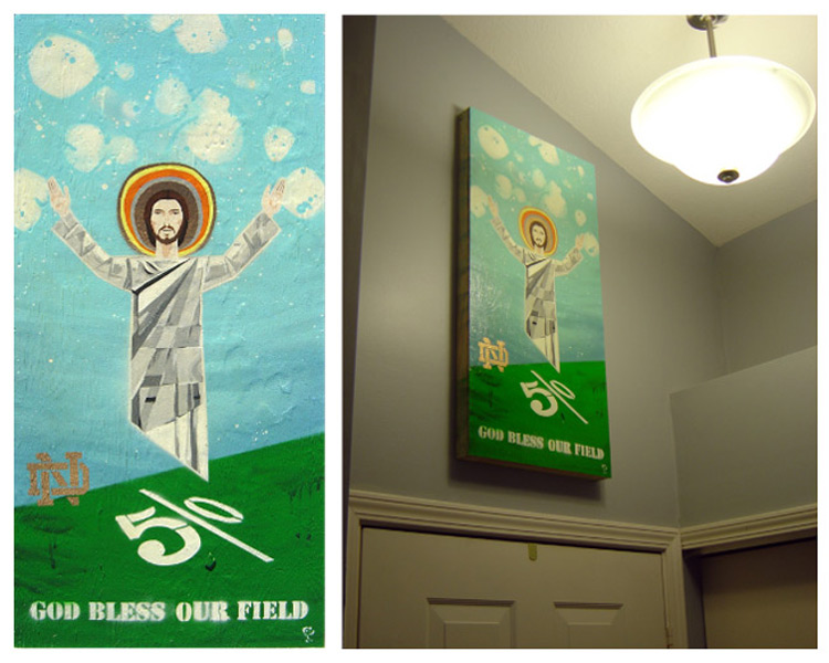 Touchdown Jesus - Spray Paint and Stencil on Wood Panel